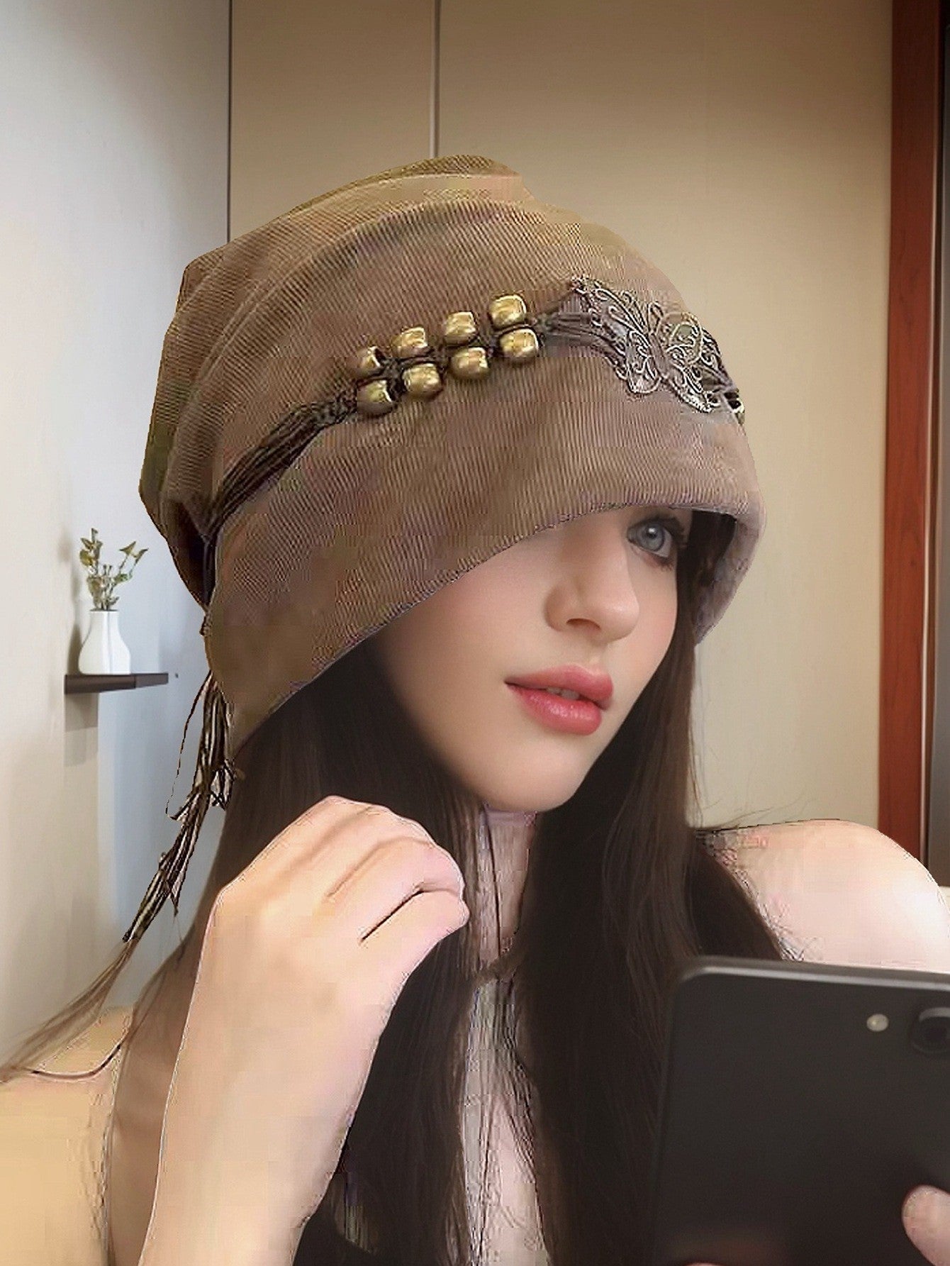 This exotic-style beanie combines tie-dye coloring, tassel accents, and delicate beadwork for a unique bohemian look. Lightweight and breathable, it’s perfect for adding personality to casual outfits.