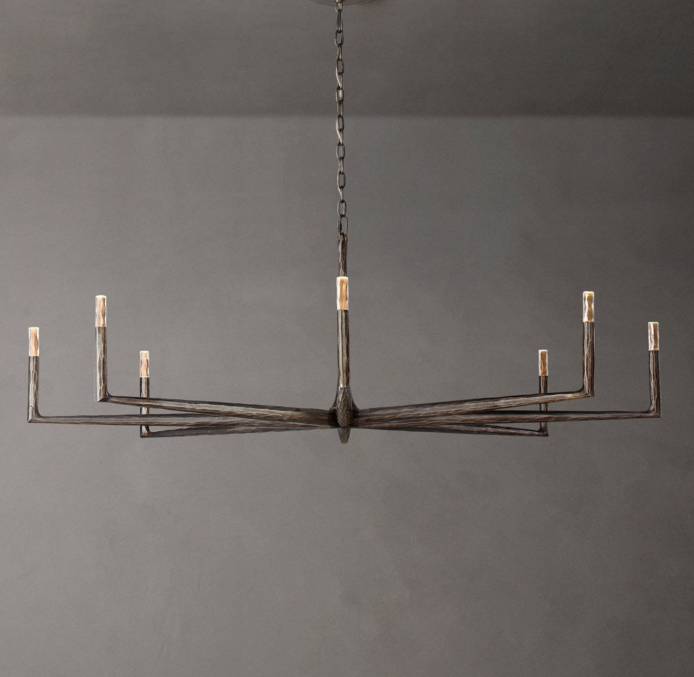 Thaddeus Forged Metal and Cast Glass Round Chandelier